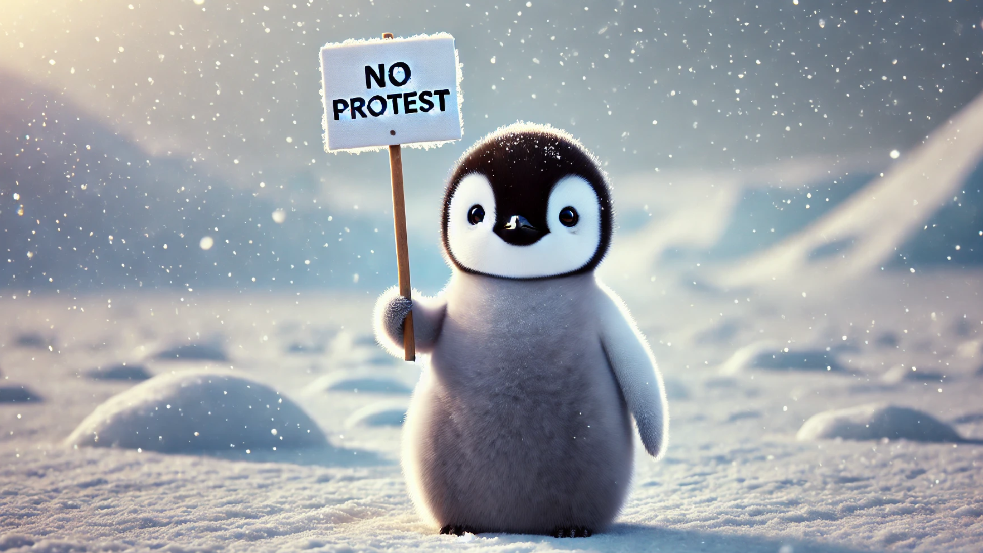 아니요, 펭귄 시위는 인터넷 밈과 패러디에서 비롯된 유머 요소입니다. 실제 상황은 아닙니다.