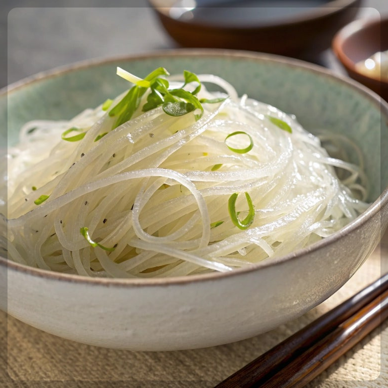 곤약국수나 두부면, 오이나 양상추 같은 저탄수 채소로 대체해도 좋아요.