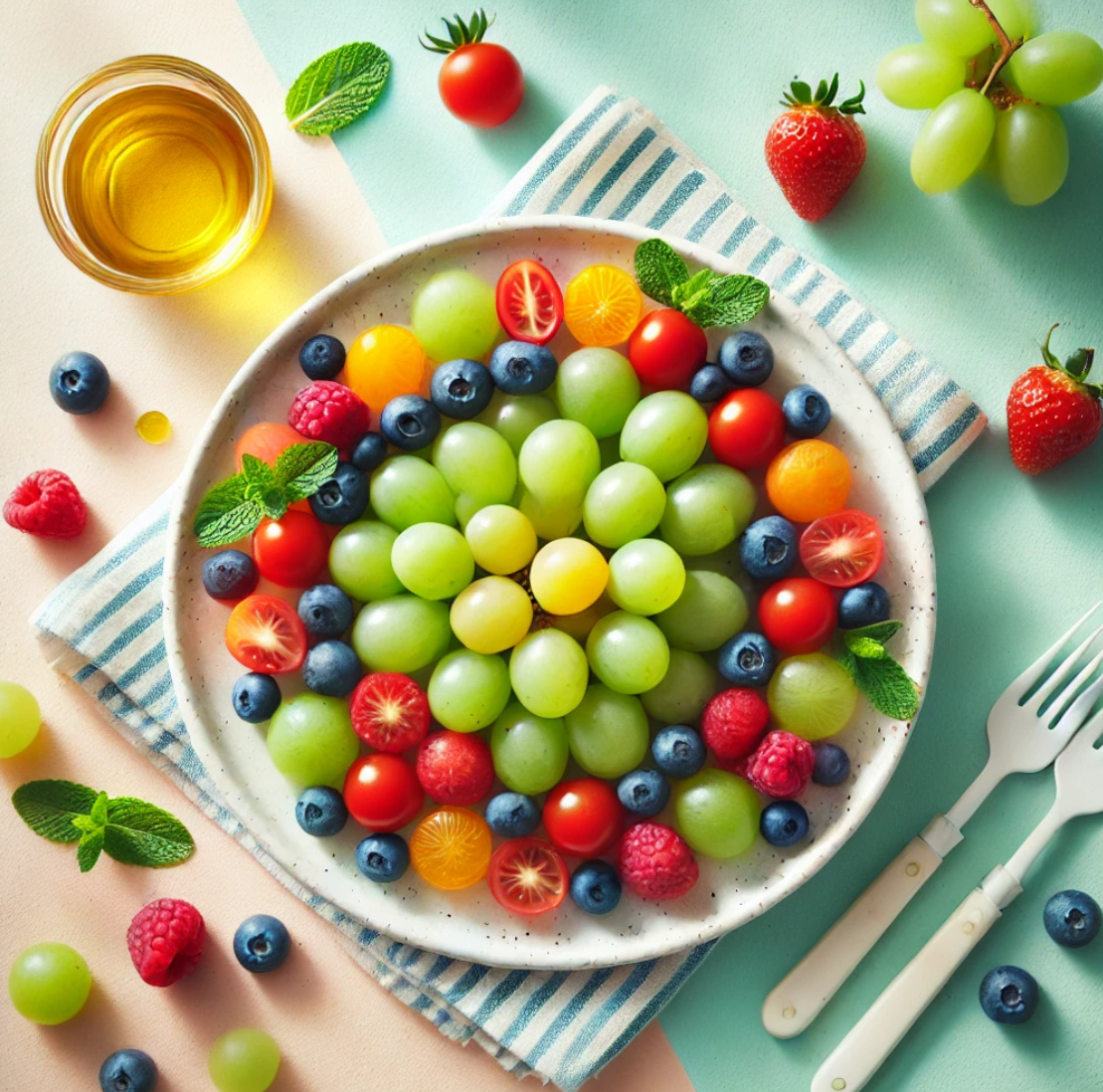 동그라미 과일 샐러드는 준비가 간단하면서도 시각적으로 예쁜 디저트를 만들 수 있는 장점이 있어요. 청포도, 적포도, 방울토마토, 블루베리, 라즈베리 등 동글동글한 과일들을 모아 사용하면 시선도 사로잡고, 한입에 쏙 먹기도 좋아요. 아래 재료들은 1~2인분 기준입니다. 기호에 따라 양을 조절해보세요!