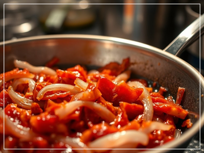 - 팬에 참기름을 두르고 대파를 볶아 파기름을 만든 후, 양파와 김치를 넣고 고춧가루, 설탕과 함께 볶아줍니다.