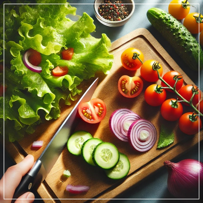 | 기본 재료 | 양상추 1/2통, 방울토마토 6~8개, 오이 1/2개, 적양파 1/4개, 블랙 올리브 (선택) |