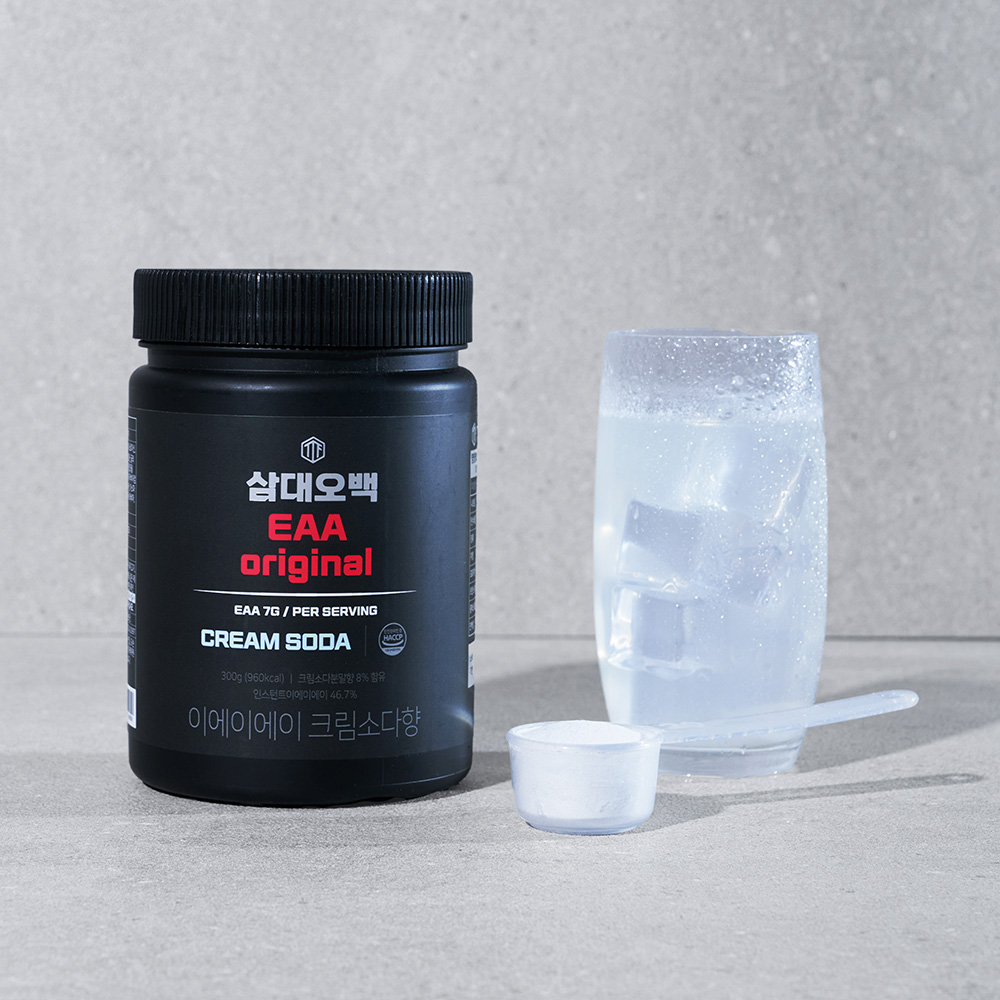 삼대오백 EAA 아미노산 크림소다는 이름에서 알 수 있듯이, EAA(Essential Amino Acids, 필수 아미노산)를 주성분으로 하는 제품입니다.
