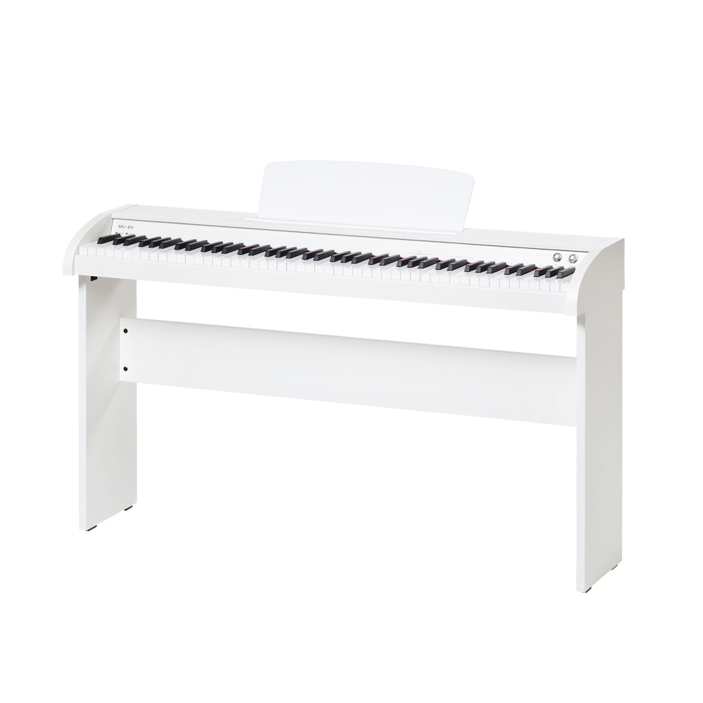 뮤디스 MU-8H는 88건반(키보드의 건반 수가 88개인 것을 의미)으로, 실제 피아노와 거의 유사한 건반 수를 갖추고 있어요.