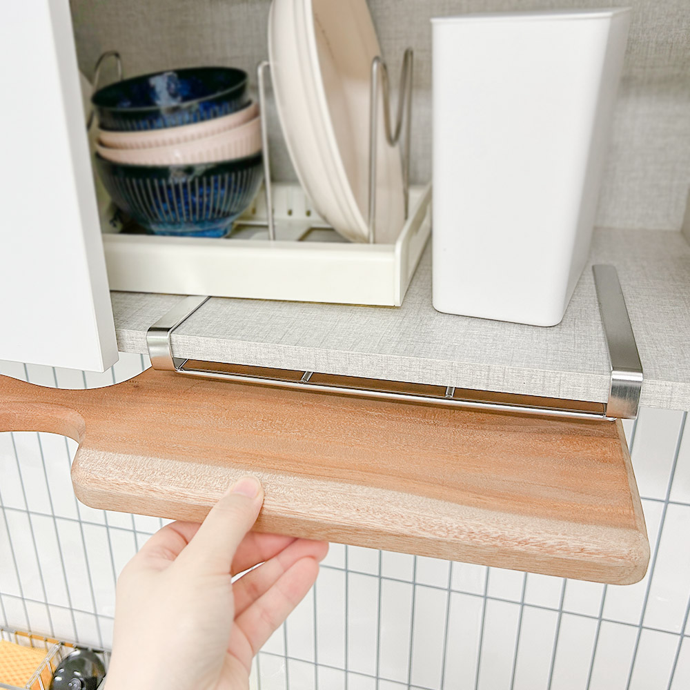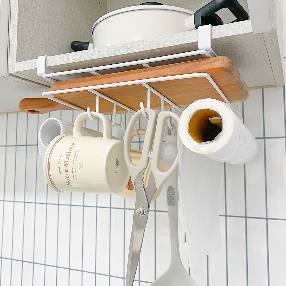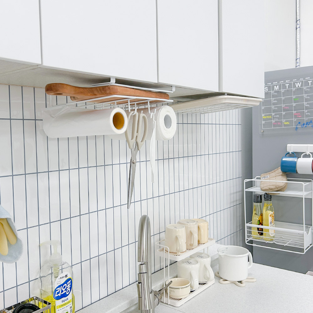 - 도마와 키친타올을 한 곳에 정리할 수 있어 공간 활용도 높음