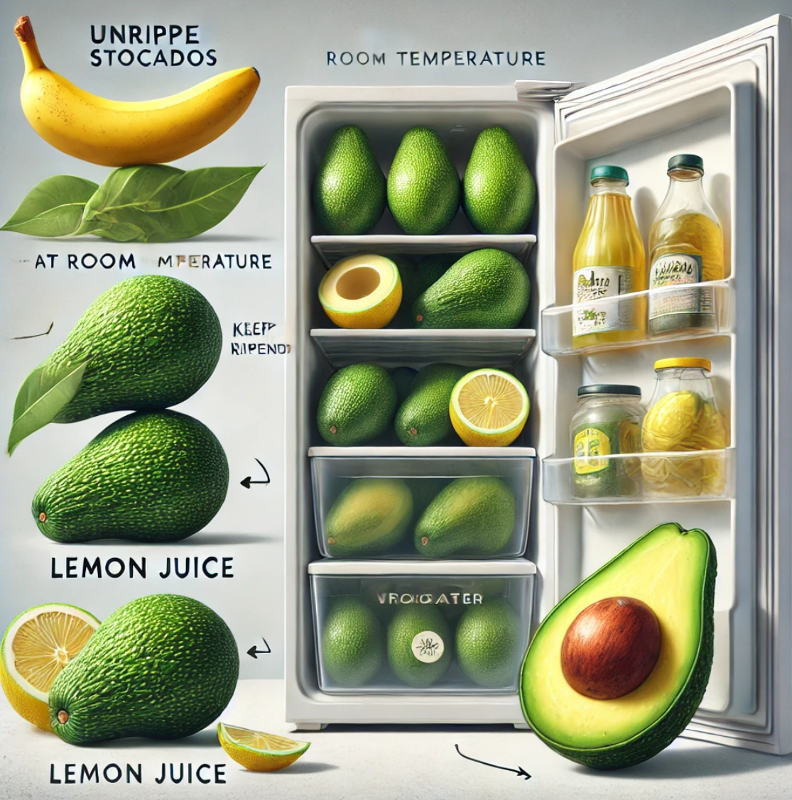 • 익지 않은 아보카도는 상온에서 후숙시켜 주세요. 바나나와 함께 보관하면 더 빨리 익어요!