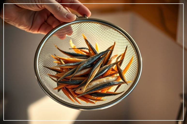 멸치 비린내는 요리의 맛을 떨어뜨릴 수 있으므로, 반드시 제거하는 것이 좋아요. 마른 팬에 멸치를 기름 없이 1~2분간 살짝 볶아주면 비린내가 줄어들고 바삭한 식감도 살아나요. 오븐이나 에어프라이어를 활용하면 더욱 고르게 구워지며 바삭함까지 더할 수 있어요. 오븐은 150도에서 5분, 에어프라이어는 140도에서 3~4분이 적당합니다. 중간에 한 번 뒤집어주면 더 좋고, 볶기 전 체에 넣어 불순물을 가볍게 털어주는 것도 잊지 마세요.