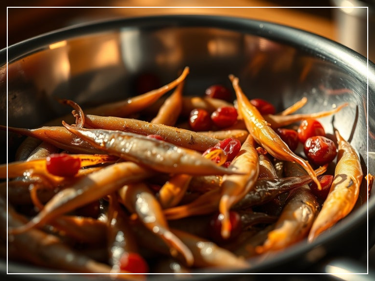 이 레시피는 2~3인분 기준으로 간단하게 준비할 수 있어요. 잔멸치와 건조 크랜베리가 주재료이고, 블루베리로도 대체 가능하다는 점이 이 요리의 매력 포인트예요. 간장과 올리고당, 참기름, 다진 마늘은 기본 양념이니 대부분의 가정에서 손쉽게 구할 수 있어요. 건조 과일은 너무 딱딱할 경우 살짝 불려 사용하는 것이 좋아요. 단, 불리는 시간은 3분을 넘기지 않도록 주의해 주세요.