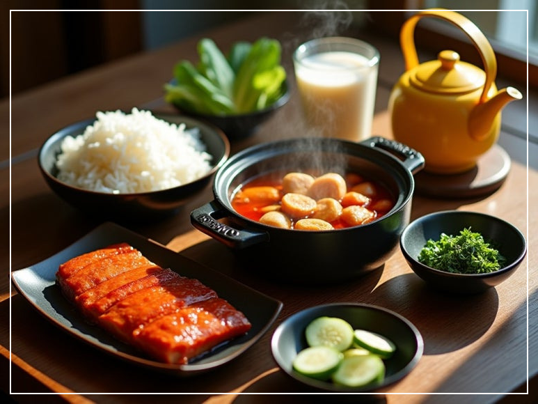 이렇게 구성하면 보기만 해도 군침도는 푸짐한 저녁상이 완성돼요. 정성 가득한 요리로 가족들과 따뜻한 식사 시간을 가져보세요!