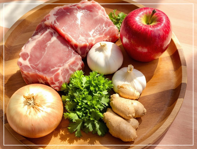 | 주재료 | 삼겹살 600g, 사과 1개, 양파 1개, 대파 1대, 마늘 5알, 생강 약간 |