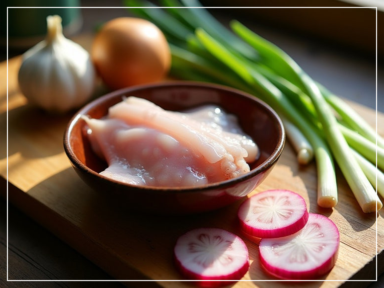 오징어초무침의 핵심은 신선한 재료입니다. 1~2인분 기준으로 오징어 1마리 또는 손질된 오징어 200g을 준비해 주세요. 무와 양파는 아삭한 식감을 위해 얇게 채 썰고, 파와 마늘은 향을 더해줄 중요한 재료입니다. 아래의 재료들을 미리 준비하면 요리가 훨씬 수월해집니다.