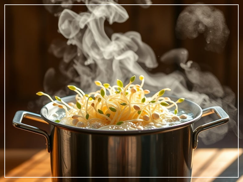 - 콩나물을 깨끗이 씻고 끓는 물에 뚜껑을 열고 1분간 데칩니다. 찬물에 헹궈 물기를 빼주세요.