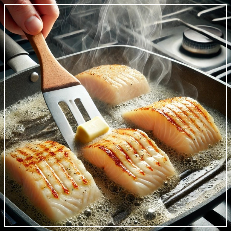 - 팬을 중약불로 달군 후 버터를 녹이고 코다리를 노릇하게 구워줍니다.
