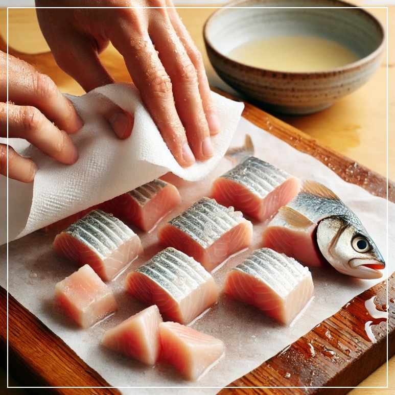 - 코다리를 깨끗이 씻은 후 물기를 제거하고, 미림 또는 청주를 살짝 뿌려 5분 정도 둡니다.