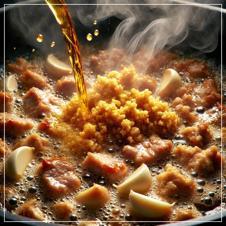 2단계는 돼지고기 볶기입니다. 냄비에 기름을 두르고 다진 마늘과 생강을 볶아 향을 낸 후, 돼지고기를 넣어 센 불에서 노릇하게 익혀주세요. 잡내 제거를 위해 맛술 한 큰 술을 넣거나, 돼지고기를 살짝 데쳐 사용하면 더욱 깔끔한 맛을 얻을 수 있어요.