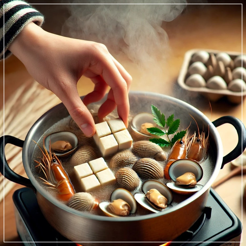 - 두부, 조개, 소고기 등 원하는 부재료를 넣어주세요.