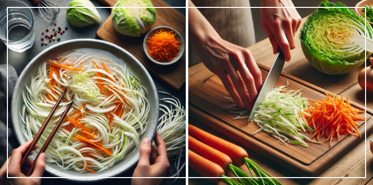 - 양배추는 찬물에 10분 담갔다가 물기를 잘 제거해야 아삭한 식감이 살아나요.