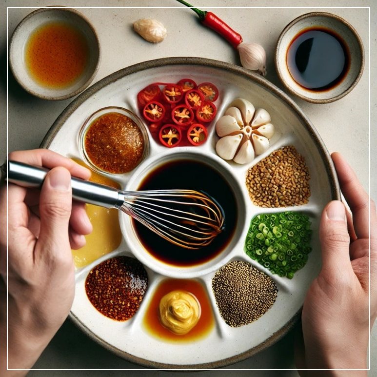 연겨자는 소스의 매콤함과 감칠맛을 더해주는 요소로, 가능하면 넣는 것이 좋습니다. 다만 기호에 따라 생략도 가능합니다.