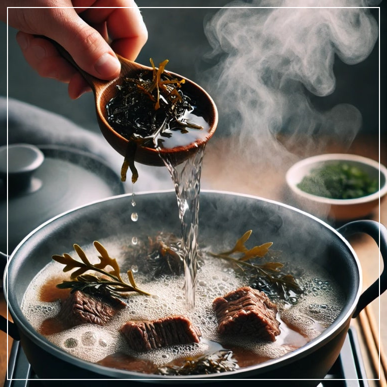 - 국간장은 미역을 넣은 뒤 볶을 때 넣어야 풍미가 삽니다.