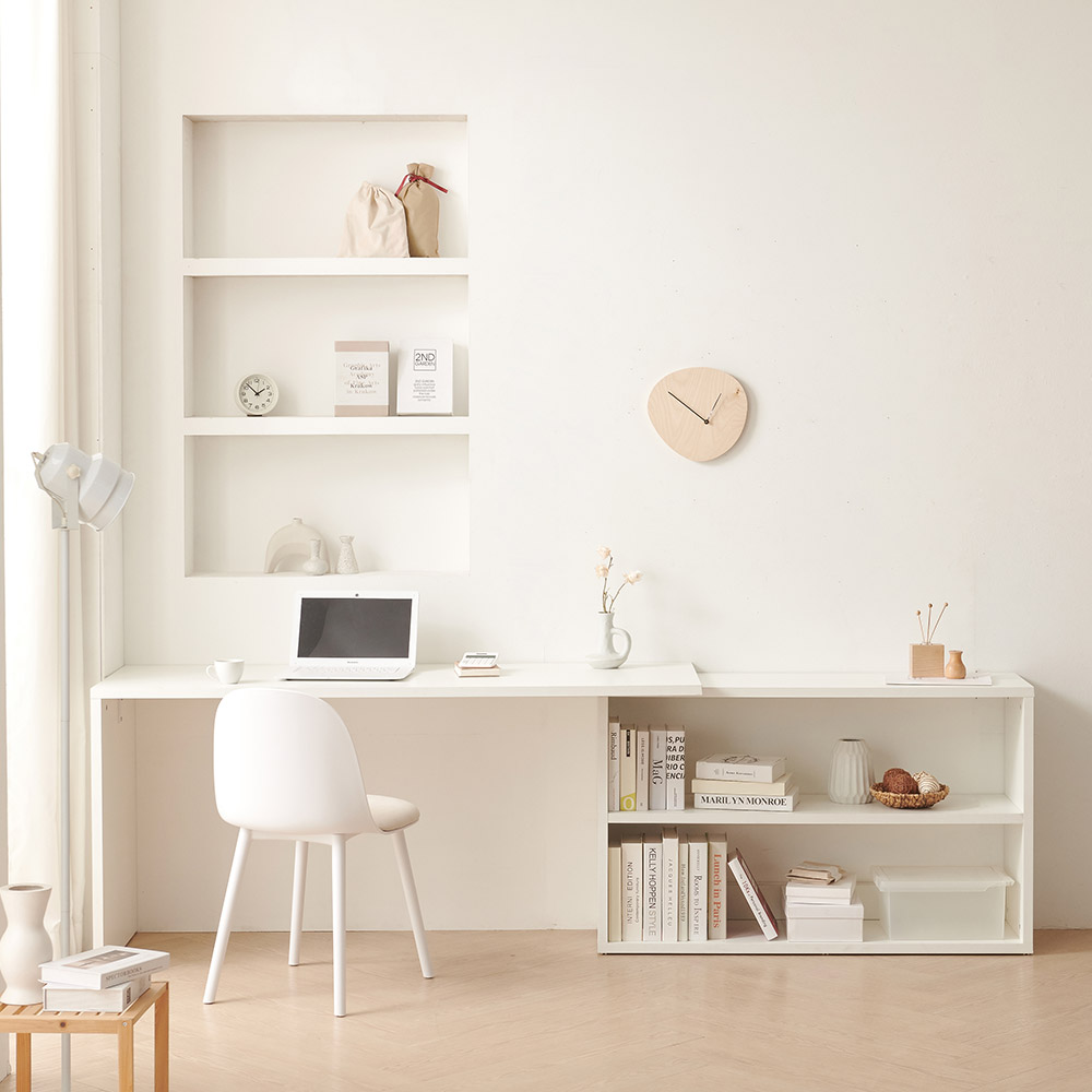 또한, 화이트 컬러는 공간을 더 밝고 넓어 보이게 만들어, 작은 방이나 협소한 공간에서도 쾌적한 작업 환경을 조성하는 데 도움을 줍니다.