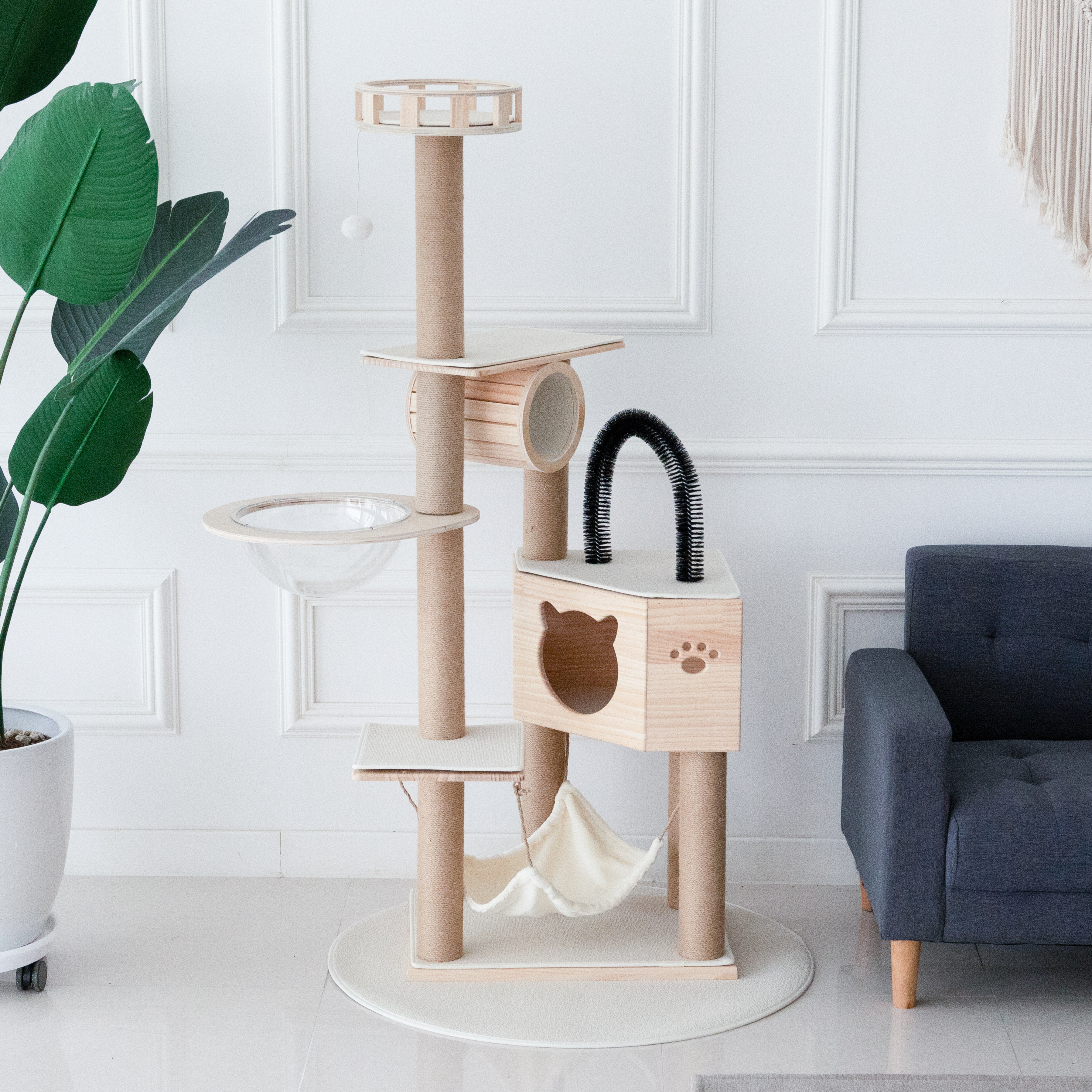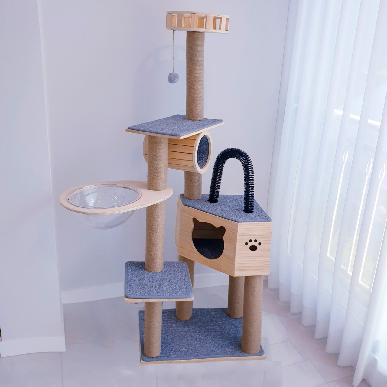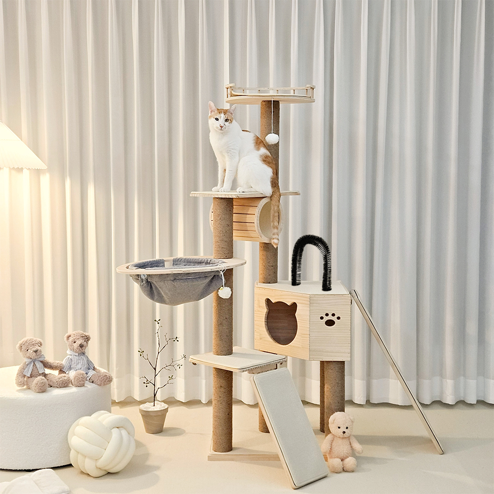 이 캣타워는 여러 개의 플랫폼과 스크래치 포스트, 숨숨집 등 다양한 기능을 갖추고 있어 고양이의 다양한 활동 욕구를 충족시켜줍니다.