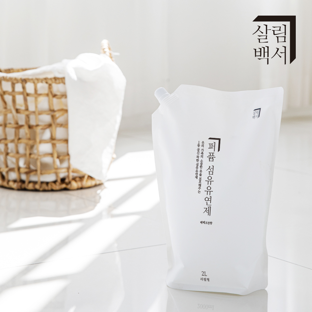 이 제품은 살림백서라는 브랜드에서 선보인 향기좋은 퍼퓸 섬유유연제로, 고농축 포뮬러로 만들어져 적은 양으로도 강력한 향기와 섬유 부드러움을 느낄 수 있습니다.