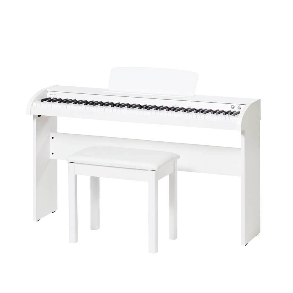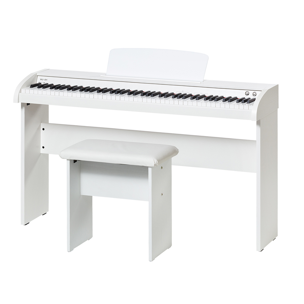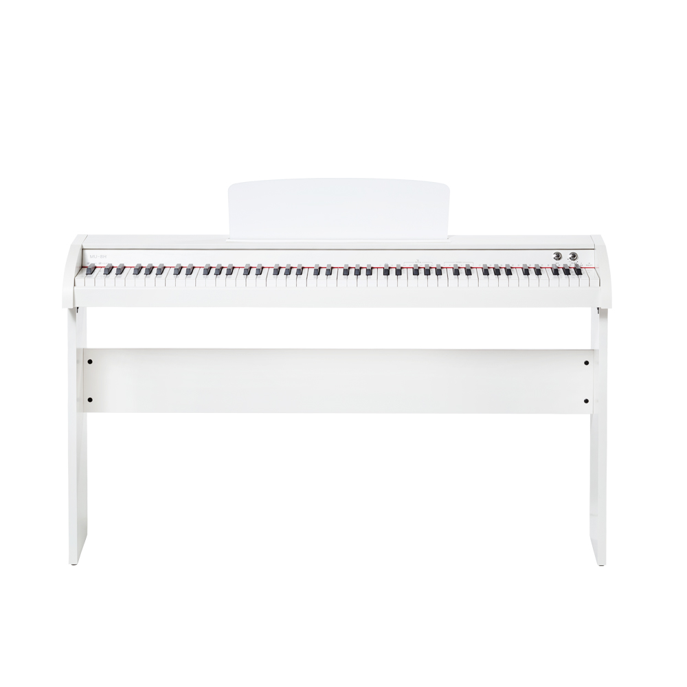 뮤디스 MU-8H는 88건반(키보드의 건반 수가 88개인 것을 의미)으로, 실제 피아노와 거의 유사한 건반 수를 갖추고 있어요.