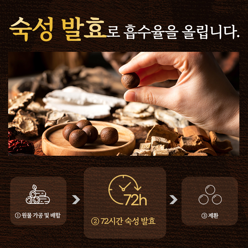 이 제품의 핵심 특징은 바로 발효 공정을 거친 침향환이라는 점입니다.