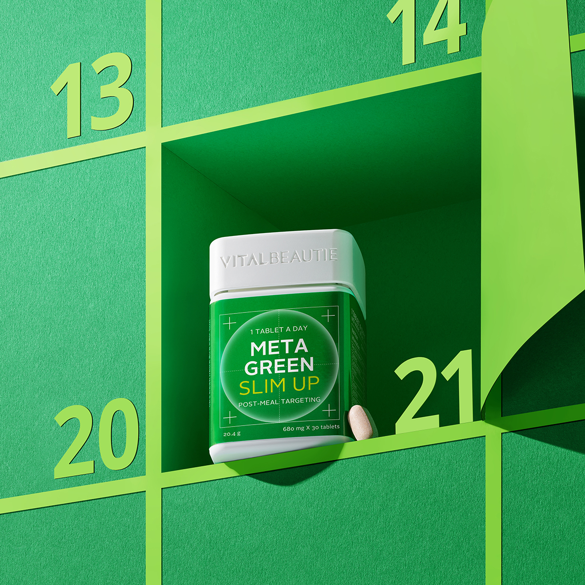 바이탈뷰티 메타그린 슬림업 AD는 체지방 감량과 혈당 조절을 동시에 목표로 하는 건강기능식품입니다. 30일 분량으로 구성되어 있어 꾸준한 섭취가 가능하며, 체내 지방 축적을 방지하는 성분과 혈당 상승을 억제하는 성분이 함유되어 있습니다. 특히 식사 후 혈당이 급격히 오르는 것을 막아주는 역할도 기대할 수 있어, 다이어트뿐만 아니라 혈당 관리가 필요한 분들에게 적합합니다.