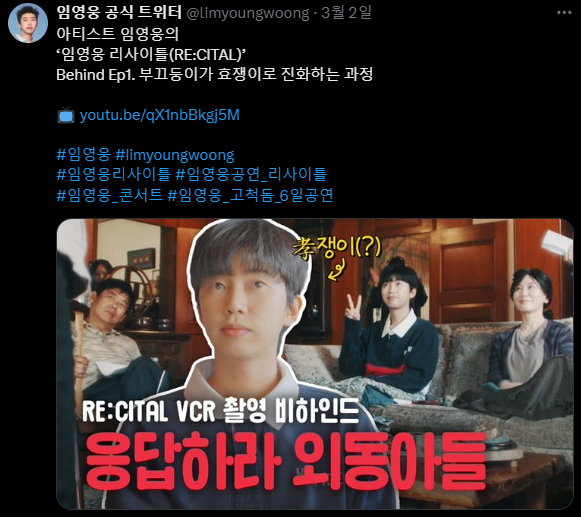 | 유튜브 | 공식 뮤직비디오 조회수 수천만 회 돌파 |